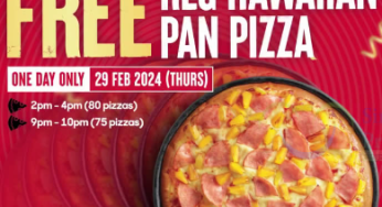 Pizza Hut giveaway free Hawaiian Pizza at all outlets except express stores today only 29 Feb. Only valid for registered…