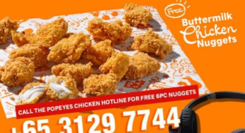 Popeyes Singapore turn problem into chicken free butter milk chicken nuggets call now. Call hotline: +65 3129 7744, for free…